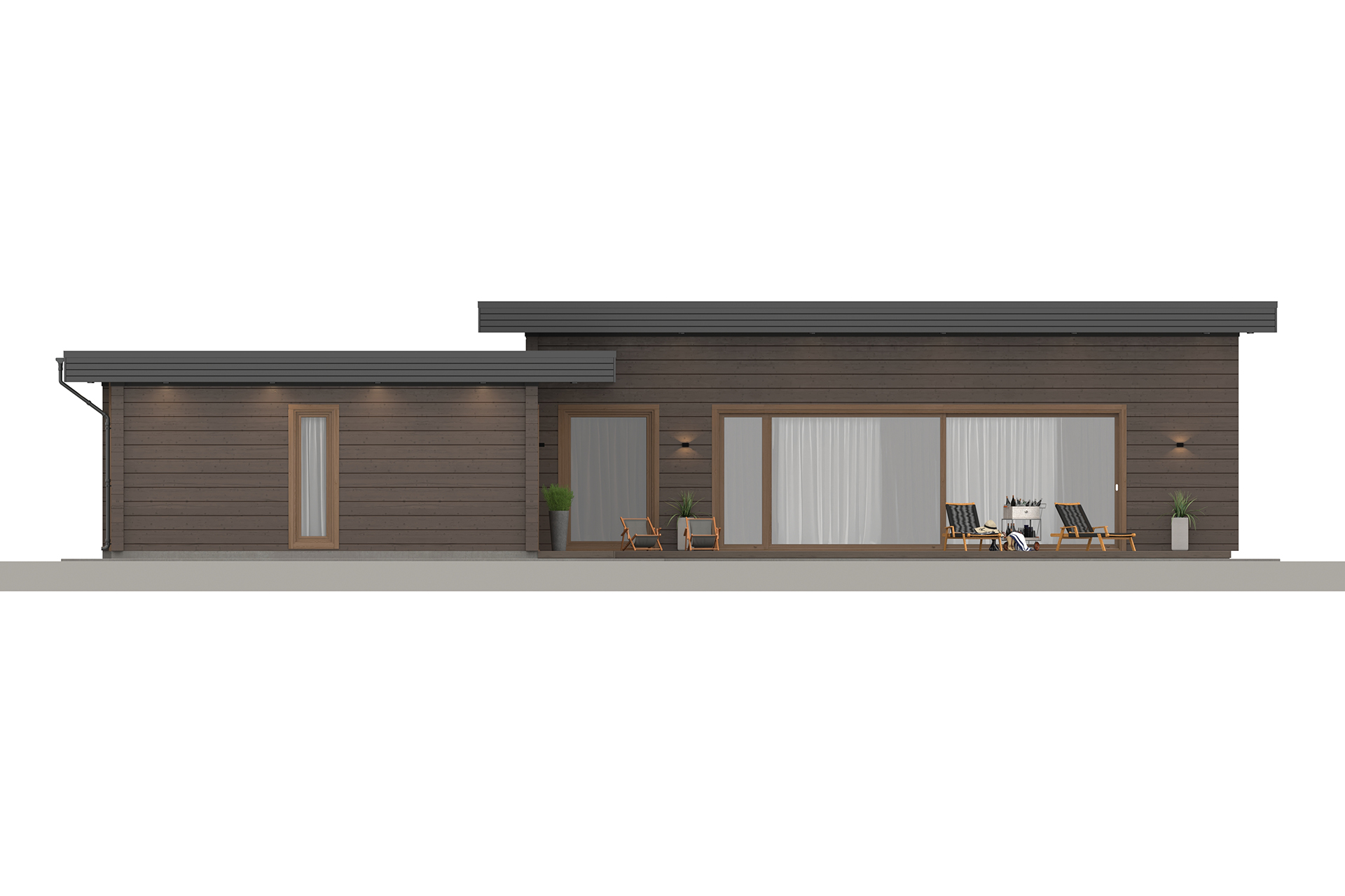 В стоимость дома включены все комплектующие и фурнитура согласно проекту. Это все открывающиеся элементы окон и дверей, раздвижные системы, дверные ручки, элементы замков и другие аксессуары.