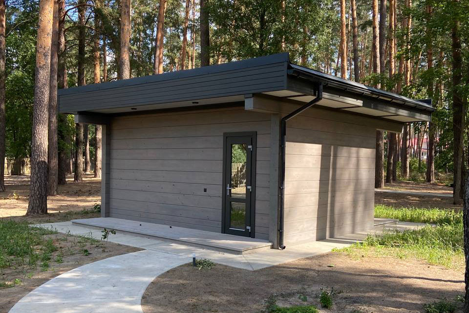 Модель отличается высокой гибкостью применения: её можно использовать как гостевой домик, дачу, офис или со временем переоборудовать в баню или сауну. Такое решение станет практичным дополнением к основному дому или самостоятельным функциональным пространством на участке.