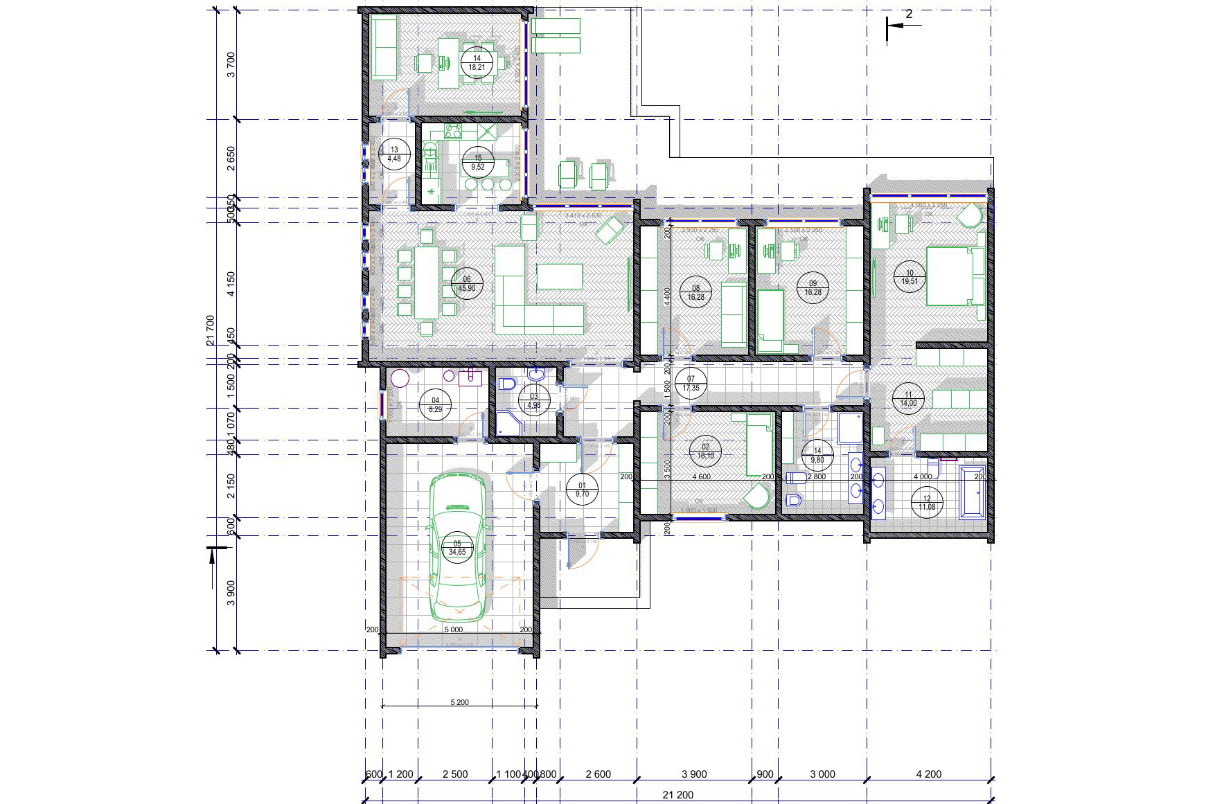 - Планы этажей с привязкой стен и размерами всех элементов;