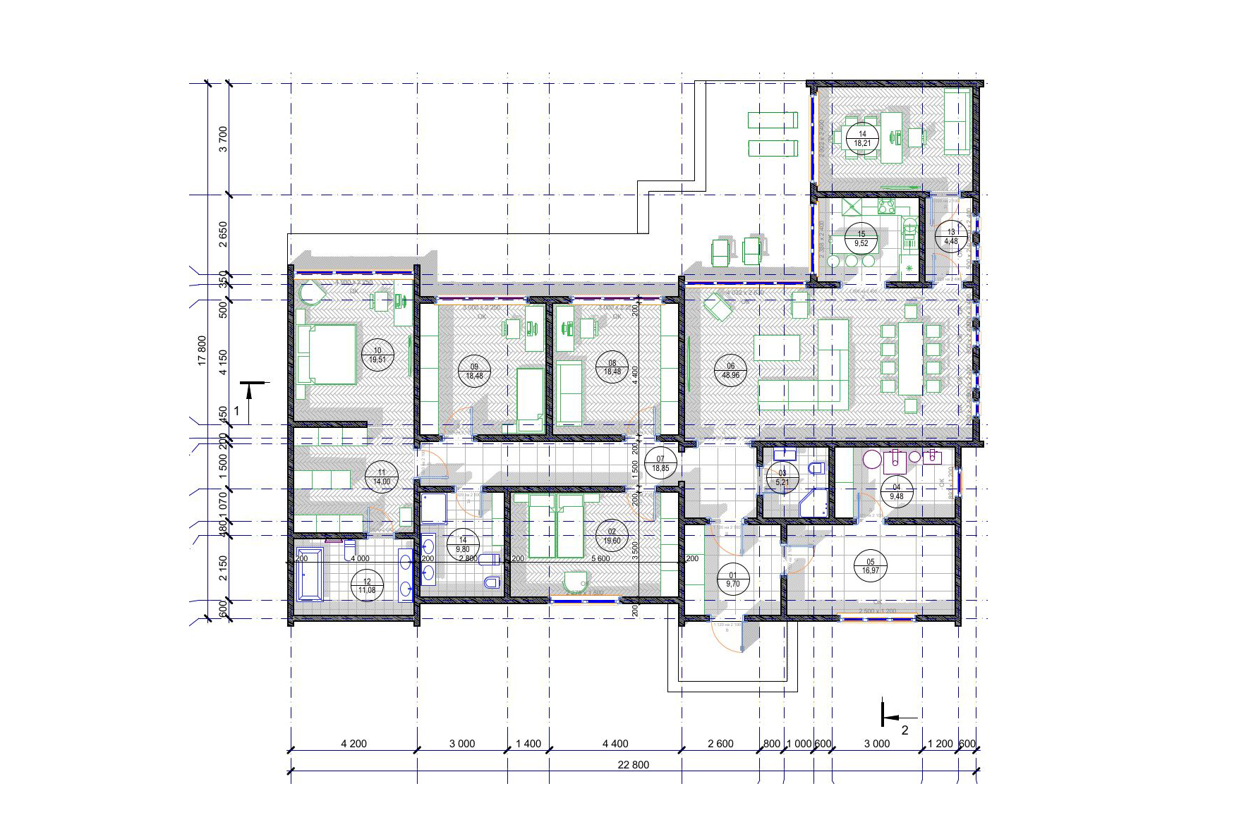 - все помещения с размерами;