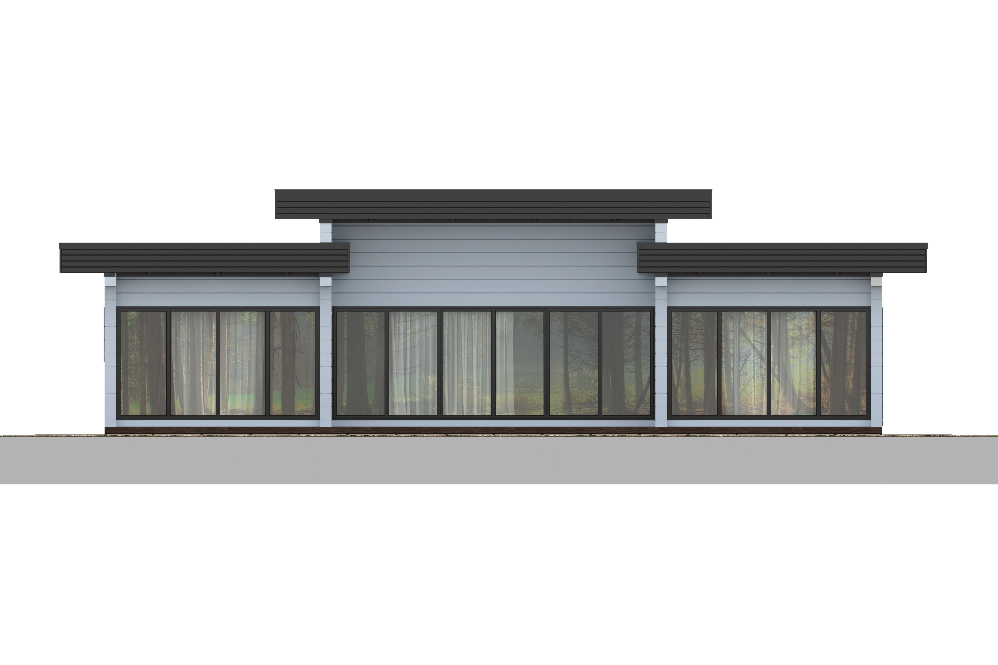 Современный внешний вид с плоской крышей и крупными окнами делает дом стильным и актуальным для семейного проживания. Благодаря возможности изменения планировочных решений, дом подходит для любых целей - от уютного семейного жилья до гостевого дома с открытыми функциональными зонами, полностью соответствуя потребностям современного образа жизни.