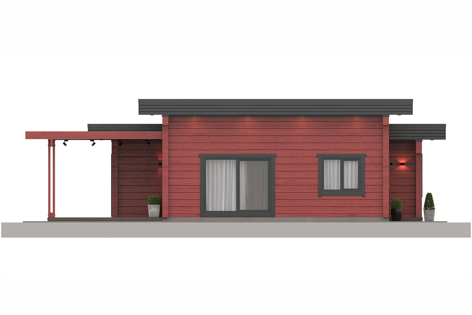 Компактная, близкая к квадратной форма дома делает его отличным решением для узких участков. Плоская кровля и современная архитектура подчёркивают актуальный внешний вид. Планировка и параметры дома могут быть адаптированы под ваши пожелания - при необходимости мы доработаем проект или создадим индивидуальное решение на его основе.