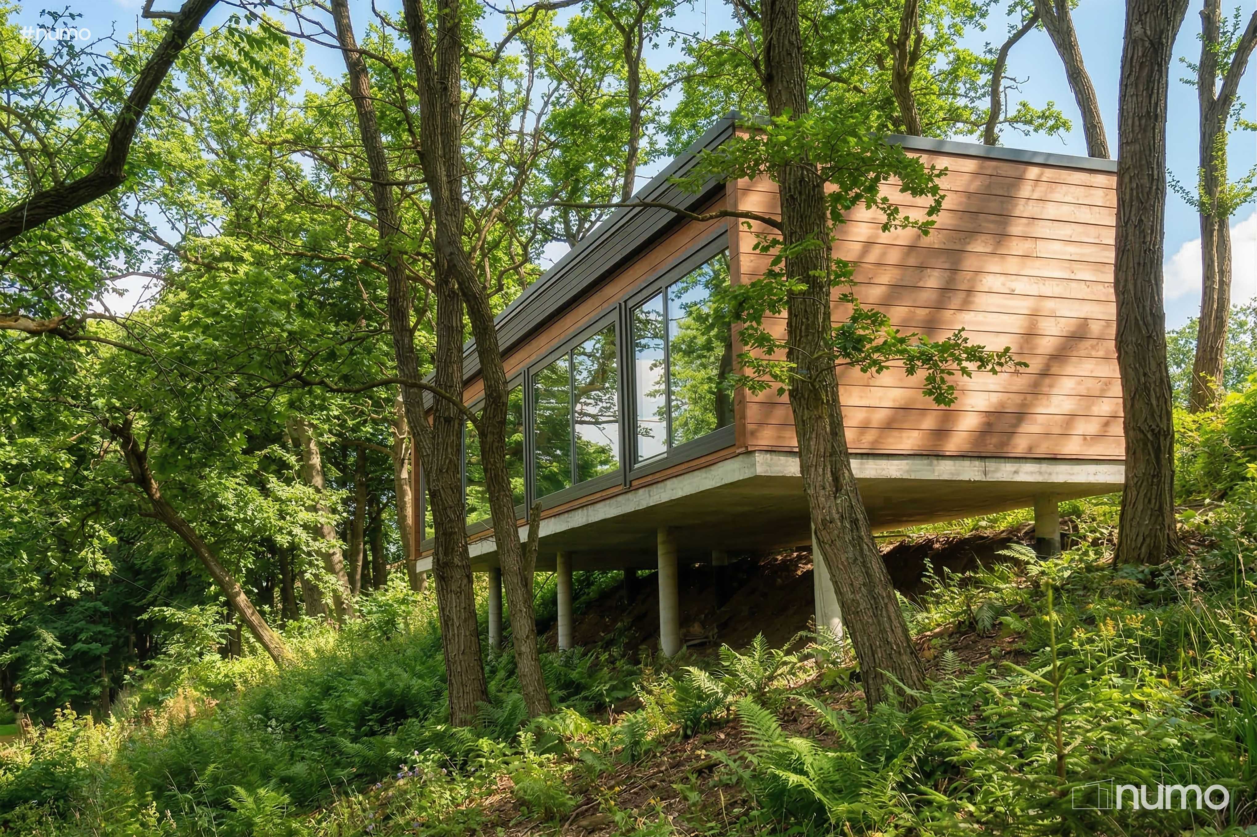 Этот современный модульный дом с плоской крышей выделяется полностью стеклянной лицевой стеной от пола до потолка. Он идеально подходит для небольших домов отдыха на видовых участках: лес, река, горы или водоемы. Панорамные окна создают непрерывную связь с природой и обеспечивают максимальное количество естественного света.