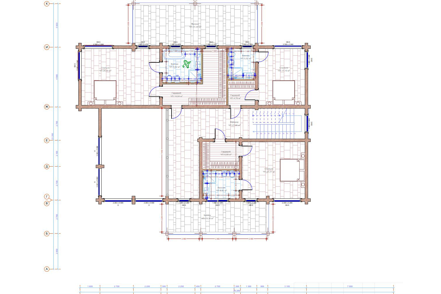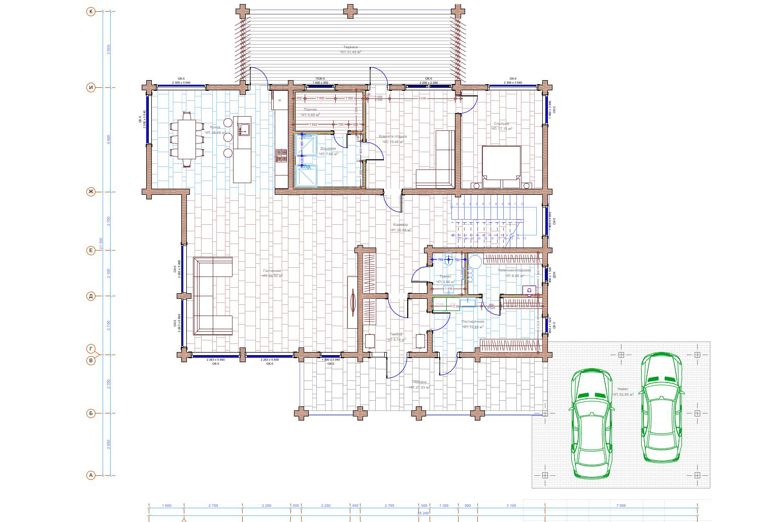 - Развёртки стен с обозначением каждого бруса и всех стыков.