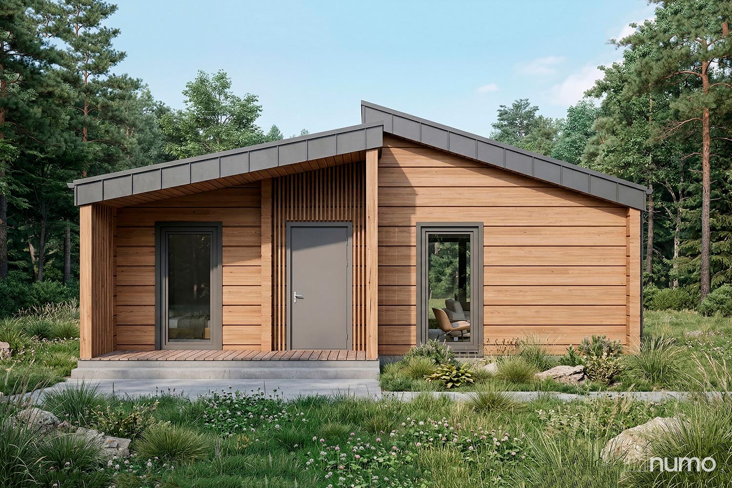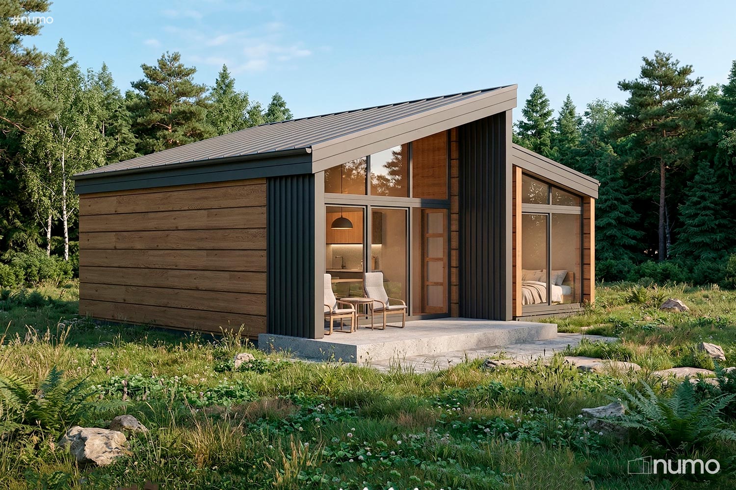 Дом универсален и подходит как для постоянного проживания, так и для сдачи в аренду: компактные размеры и разумная стоимость делают его топовым вариантом для видовых или компактных участков. Большие окна наполняют интерьер светом, а архитектура в целом гармонично вписывается в современный ландшафт.